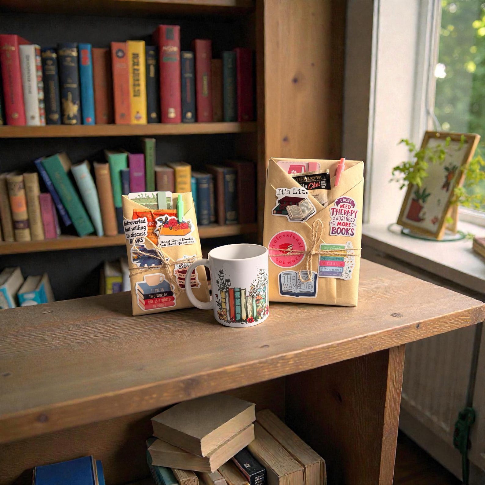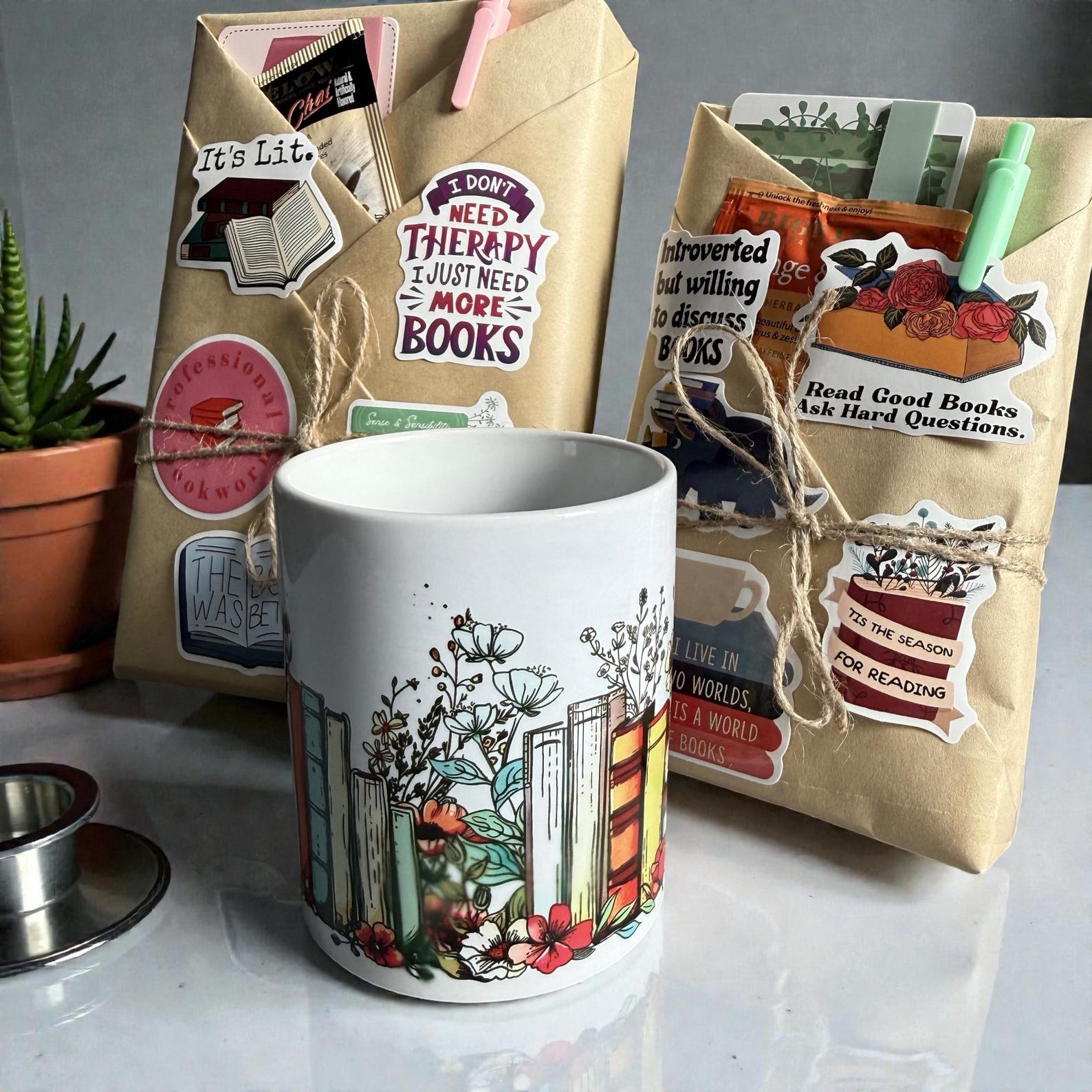 A mystery book wrapped to surprise, paired with a cozy coffee mug for the perfect sip-and-read experience.