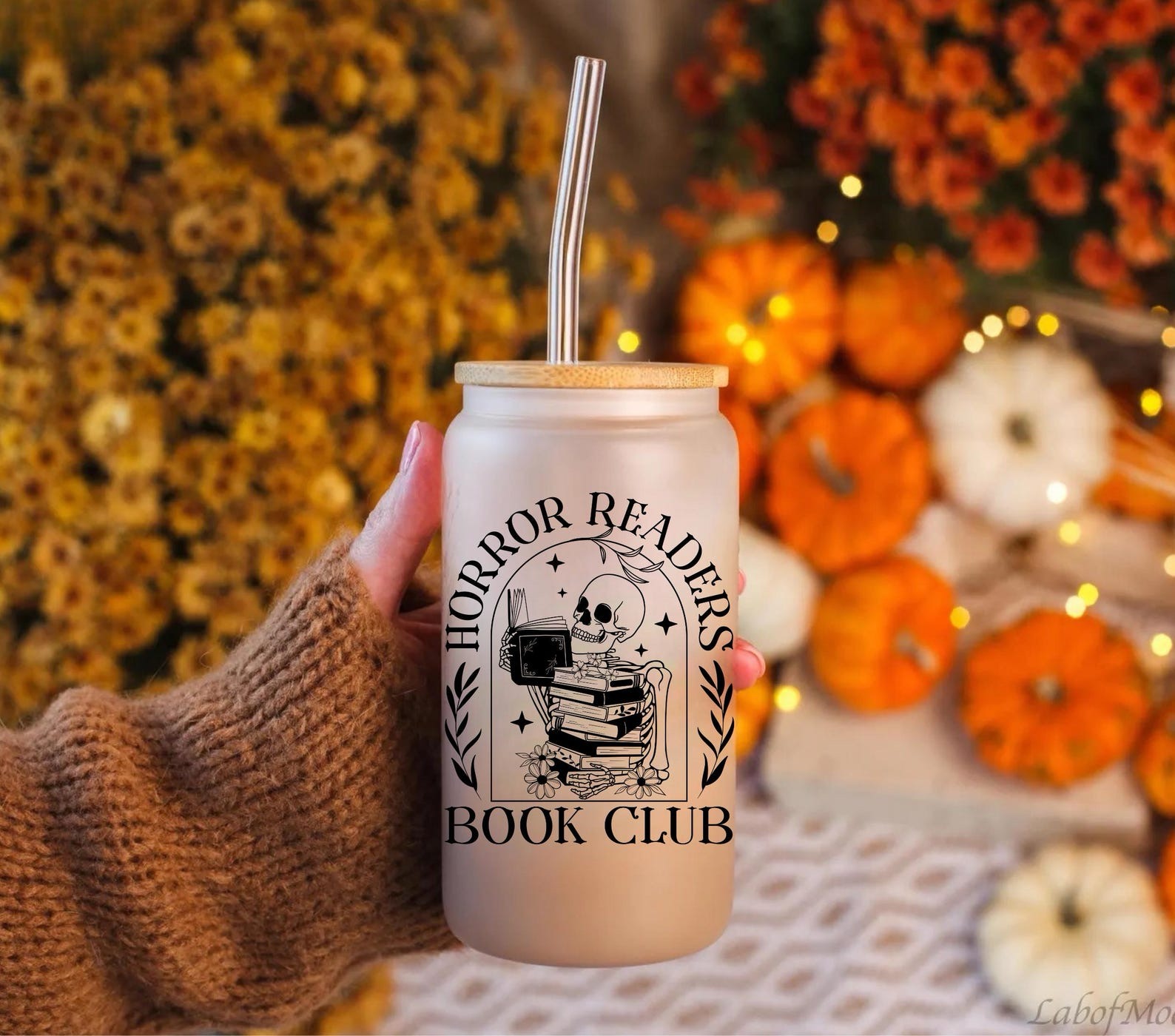 Spooky Readers Book Club glass tumbler—perfect for cozy, bookish Halloween vibes. 👻📚